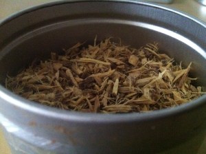 I saw a box of 16 tea-bags, priced at just under $7.00 – I thought this was a little steep (pun intended), so then glancing over to a different area of the store, I saw a jar of loose liquorice root. On weighing this out into my trusty small re-sealable, re-usable bag, I realized I could take enough root that would easily make double the amount of 16 bags, for a mere $2.00 – Bingo!